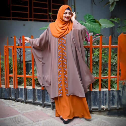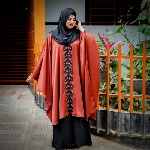Gorgeous Floral Design Thread Embroidery on Shrug Kaftan (Burnt Orange)