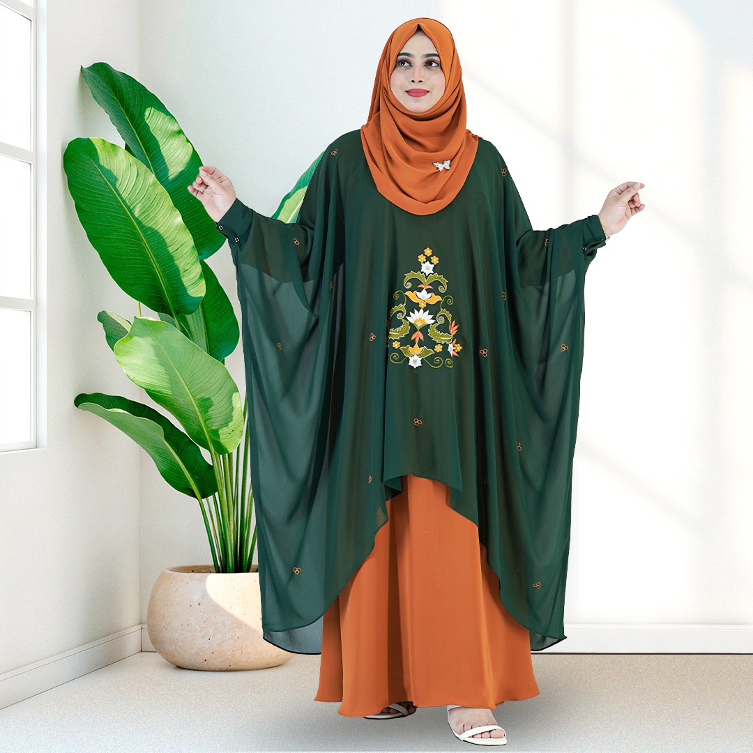 SANIYA – Elegant Bottle Green and Mustard Contrast Modest Cape Set