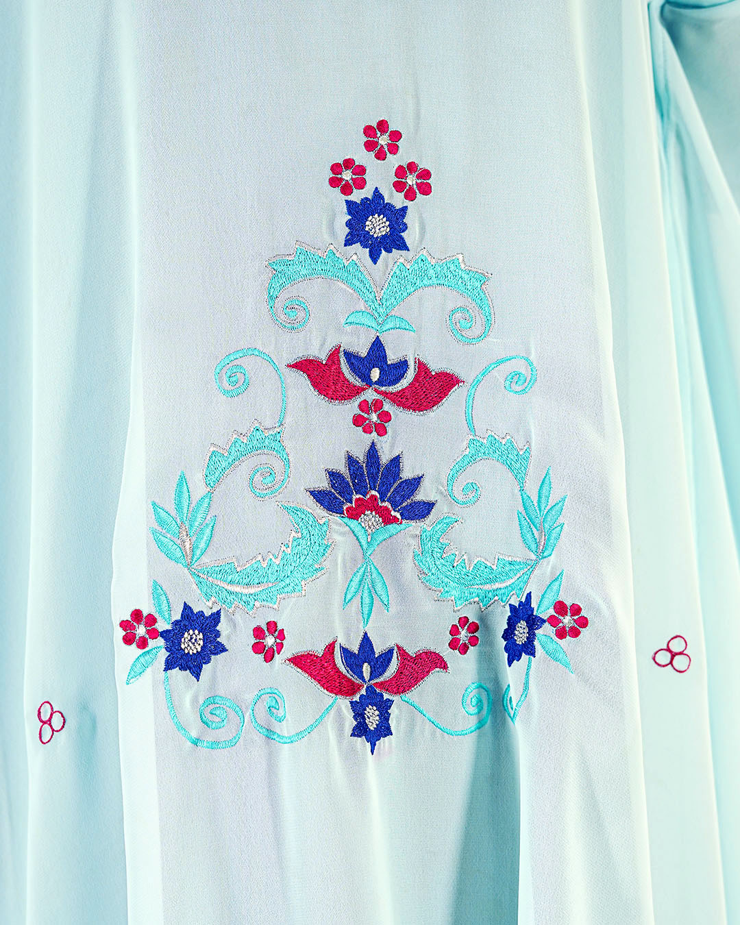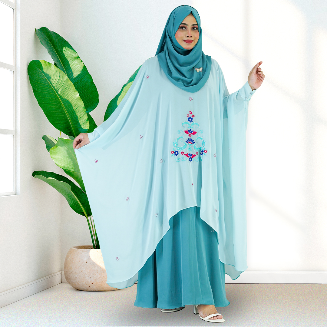 SANIYA- Sky Blue Luxury Cape Set with Elegant Embroidery