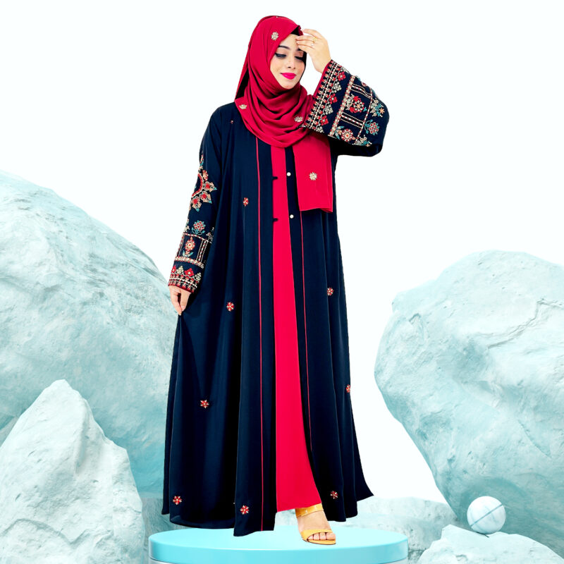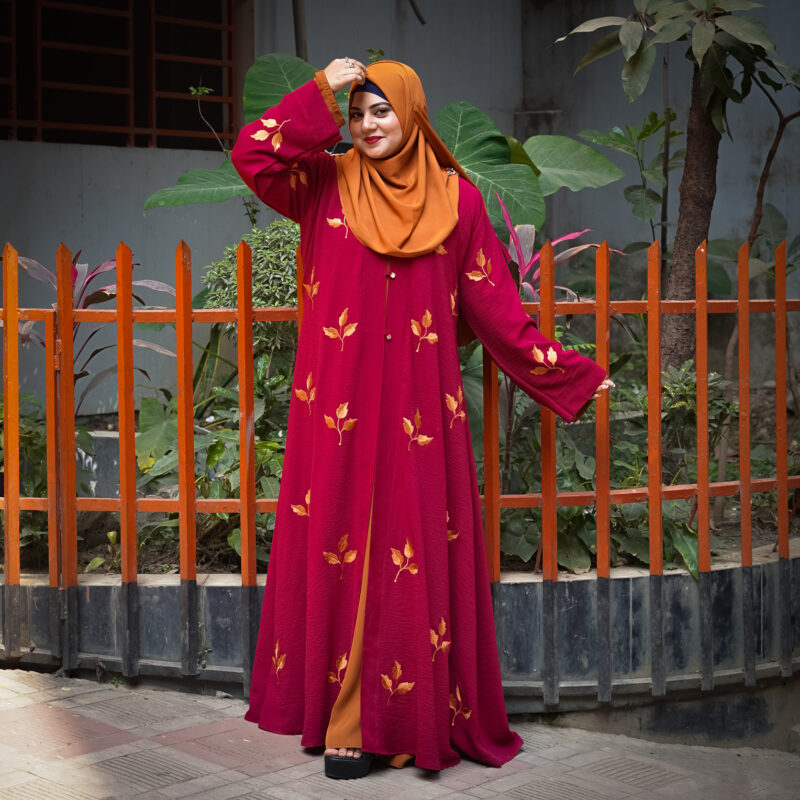 PAARI Premium CY Fabric Embroidered Abaya Maroon