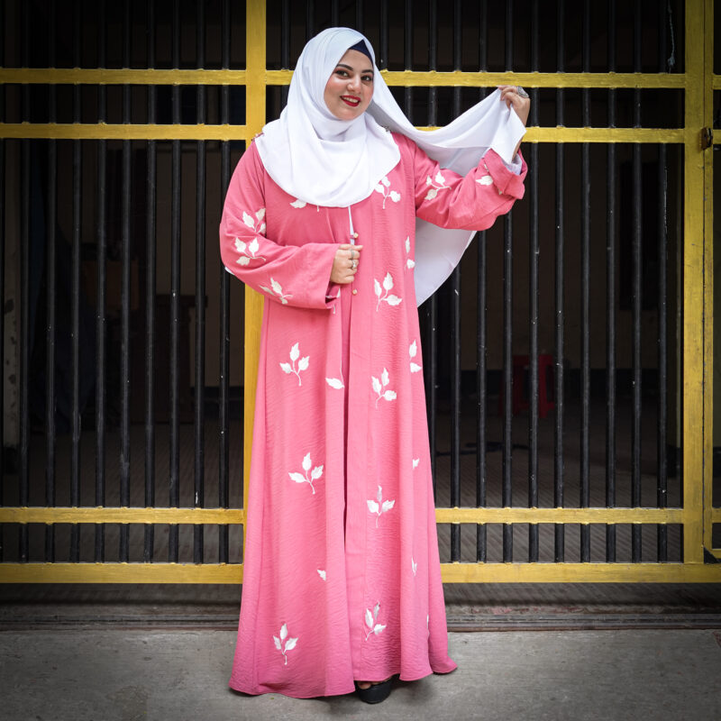 PAARI Premium CY Fabric Embroidered Abaya Onion Pink
