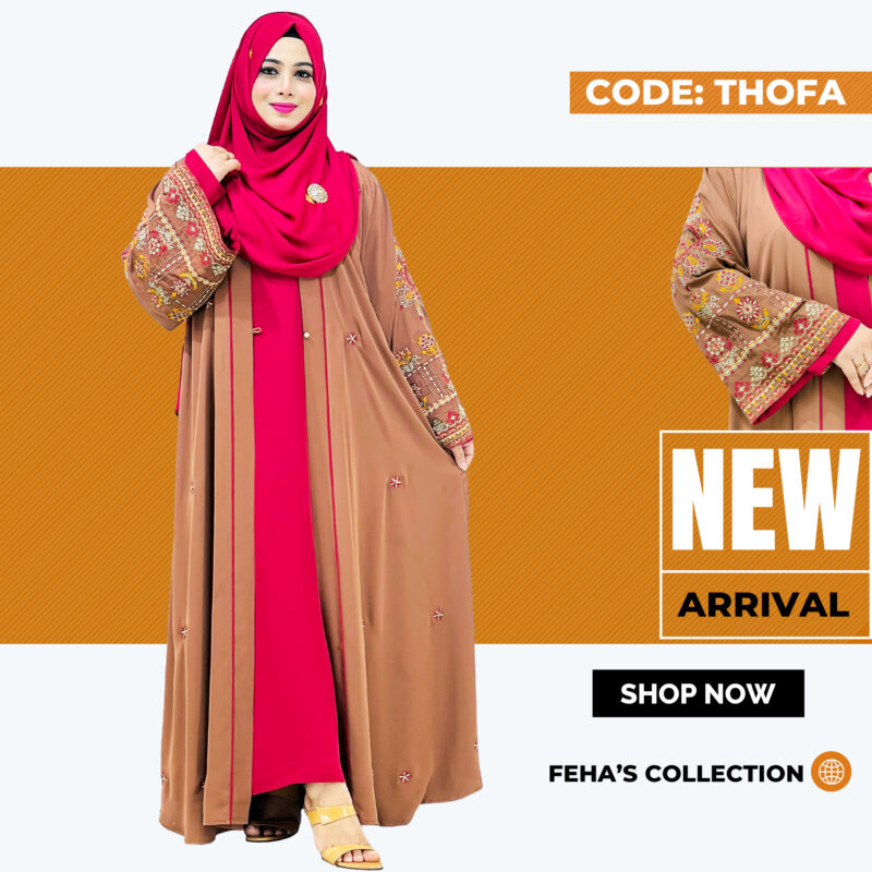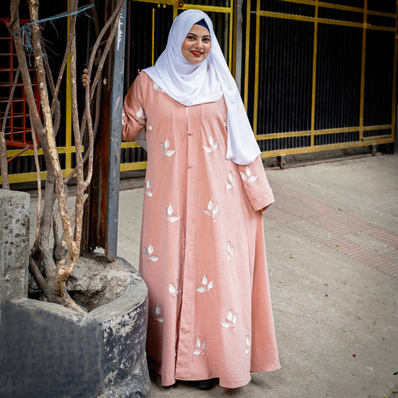 PAARI Premium CY Fabric Embroidered Abaya Peach