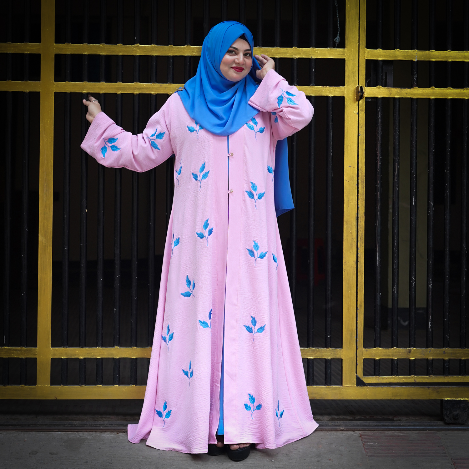 PAARI Premium CY Fabric Embroidered Abaya Baby Pink
