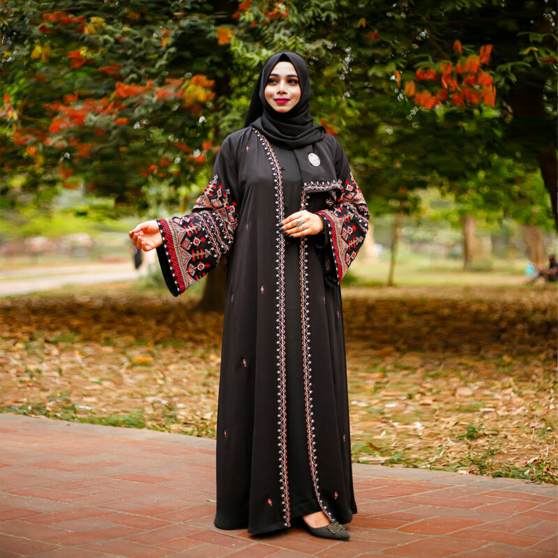 ZAIMA Premium Dubai Cherry Embroidered Abaya Black