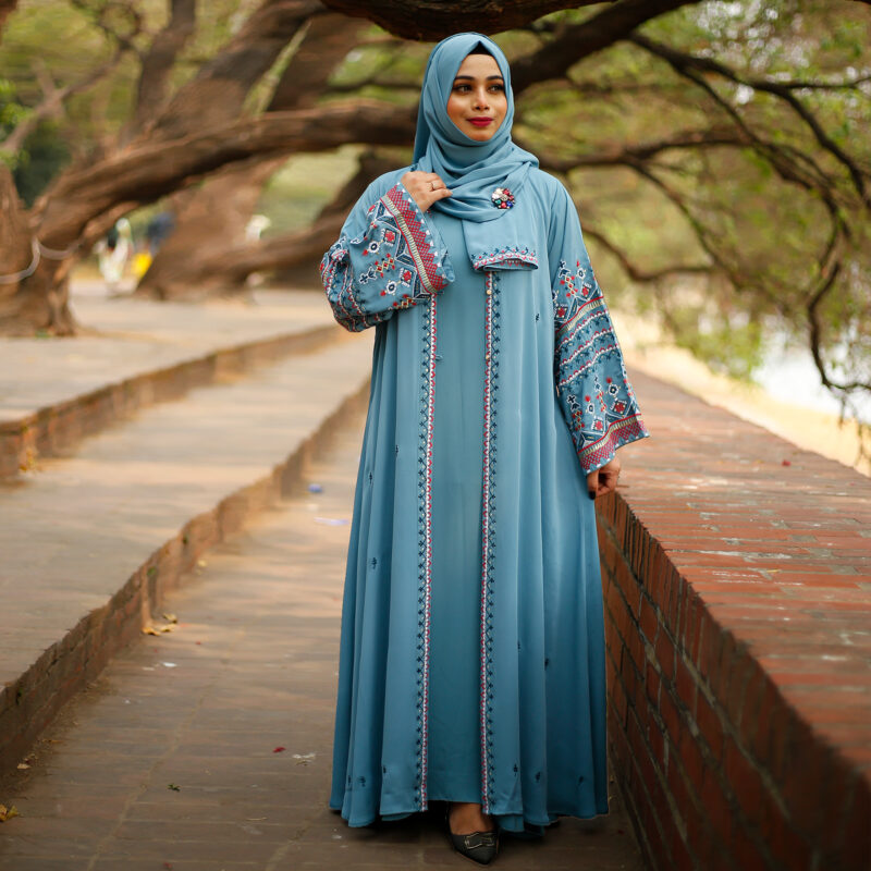 ZAIMA Premium Dubai Cherry Embroidered Abaya Mint Blue